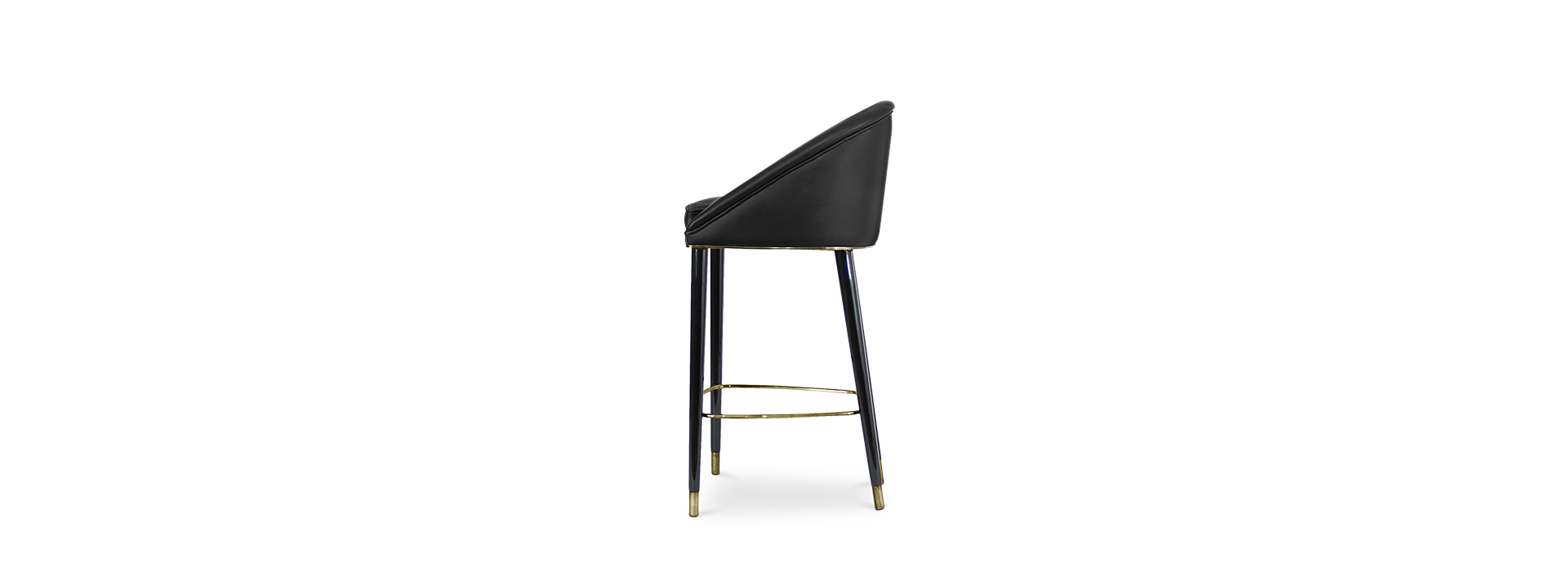 The Malay Archipelago whispers the story of diverse cultures such as Indonesia, the Philippines and Singapore. These ethnicities give life to MALAY Bar Chair – a graceful black leather chair with a mystical soul that will fulfil your entire ambience with energy from nature. Enjoy this comfortable chair upholstered in synthetic leather with legs in black lacquered and aged brass details.