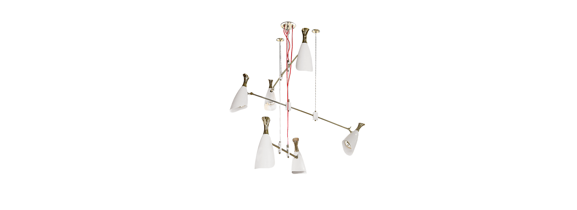 Duke Pendant Lamp boasts a heavy nostalgic 70s groove vibe. Inspired by the simplicity of the 1970s, DelightFULL’s designers were able to create an iconic modern ceiling light that suits the most demanding setting. Produced in Portugal, it is handmade in brass and aluminum. The body, made of brass, has both a matte black and a gold-plated finish, while the shades are lacquered a glossy black on the outside. The inside is matte white, but it can also have a gold powder paint finish. It is a stunning bedroom ceiling light, but this large ceiling light can also be considered for other settings, such as a mid-century modern living room.